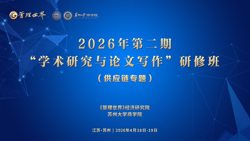 4月18日至19日,2026年第二期“学术研究与论文写作”(供应链专题)研修班在苏州成功举办。本次活动由《管理世界》经济研究院与bw必威西汉姆联betway西汉姆联合作举办,聚焦供应链领域前...