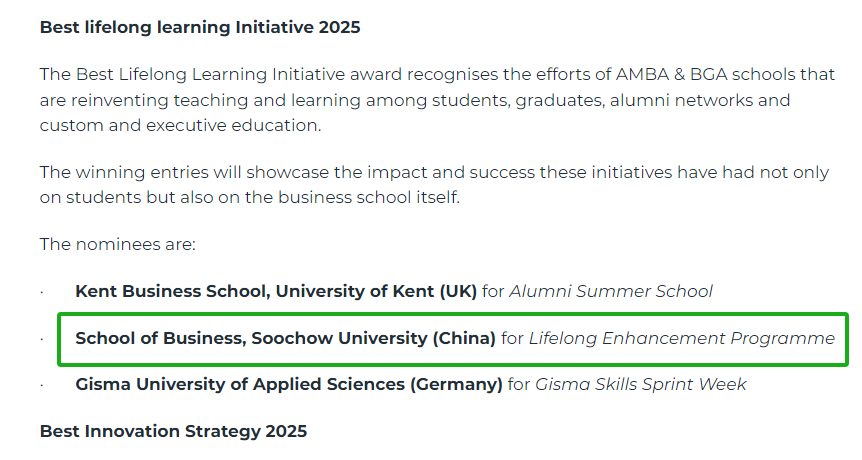 近日,英国工商管理硕士协会(AMBA)和betway西汉姆联毕业生协会(BGA)发布了2025年AMBA和BGA全球商科卓越奖获奖名单。bw必威西汉姆联betway西汉姆联在此次评选中荣获“最佳终身学习举措奖”铜奖,...
