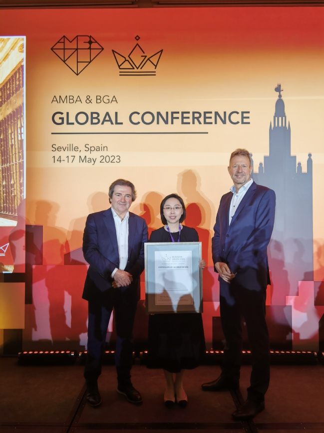2023年5月14-17日,betway西汉姆联院长冯博教授,国际认证中心主任方一蔚教授赴西班牙参加了AMBA-BGA全球院长会议,并且领取了我院获得的BGA金牌认证证书。