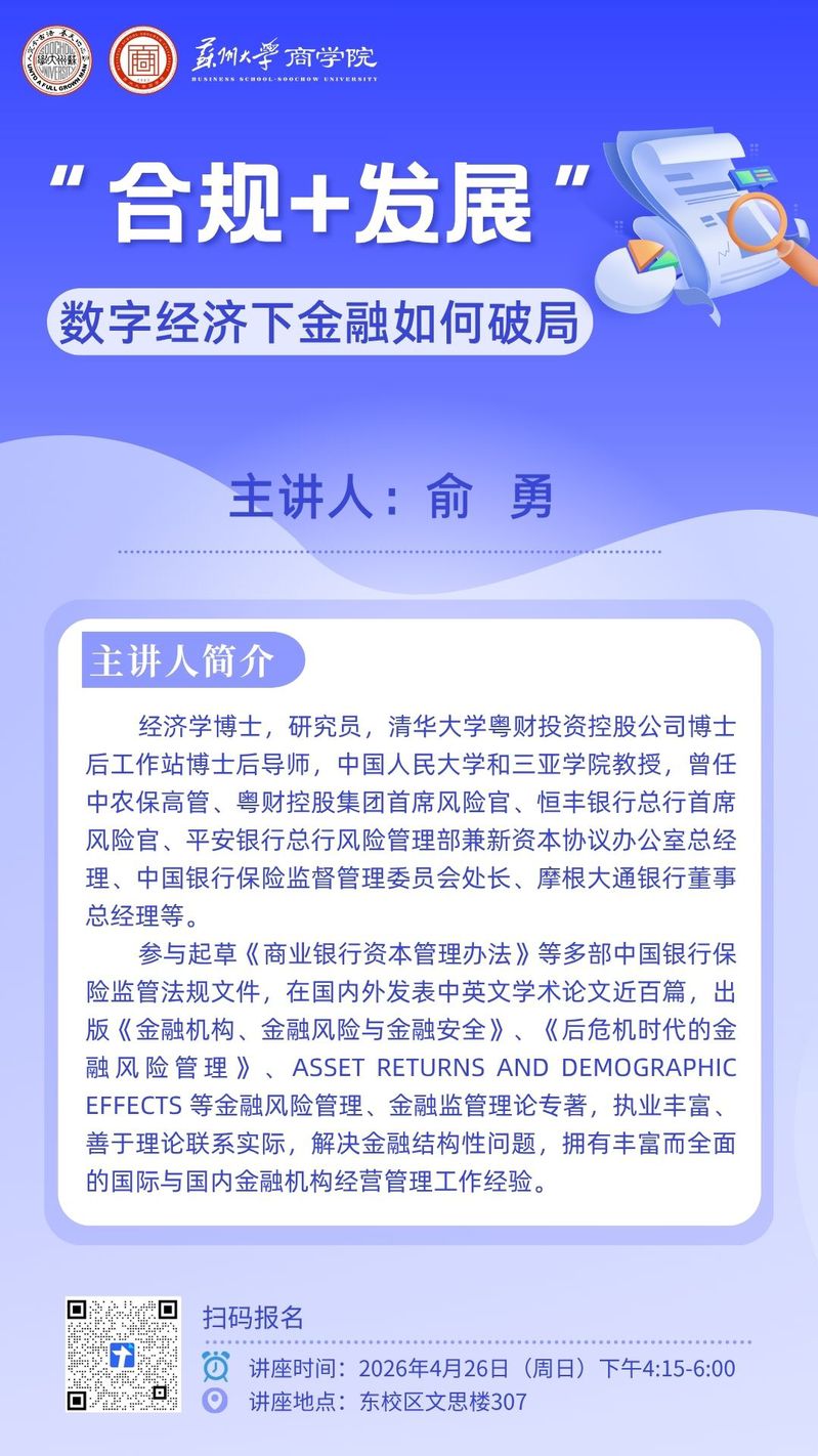 讲座预告丨俞勇:“合规+发展”,数字经济下金融如何破局?