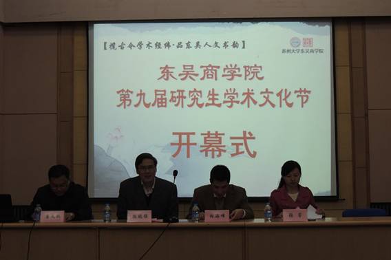 接着,杨慧同学介绍了东吴betway西汉姆联第九届研究生学术文化节的主要内容:本届研究生学术文化节的主题为“揽古今学术经纬?品东吴人文书韵”,将开展“博学”、“思辨”、“践行”三个系列的活动。“博学”系列活动由“揽古今学术经纬?品东吴人文书韵”第九届研究生学术文化节开幕式、“砥砺学术?切问睿思”研究生科学道德与学风建设讲座、“扬实证风帆?探学术之海”实证论文专场讲座、“知潜而践行?学广而致远”硕博论坛、“传递?厚积?进取”第九届研究生学术文化节闭幕式暨毕业研究生经验交流会共五场活动构成;“思辨”系列包含“与心灵相约?与健康同行”研究生心理讲座、“思辩青春?笃行求真”研究生辩论赛、“笑傲擂台?一站到底”研究生知识竞赛、“寰宇之声”研究生英语沙龙四个主题活动;“践行”系列包括五场主题活动——“潋滟生活?乐学乐行”研究生素质拓展、“驿动年华?真我风采”研究生趣味运动会、“书韵留香?你我共享”研究生图书漂流节活动、“情系姑苏?美在东吴”研究生创意摄影征集、“传东吴人文情怀,递莘莘点滴关爱”爱心书屋图书捐赠。生动活泼、丰富多彩的校园学术文化活动,旨在进一步深化校园学术氛围,激发同学们的学术研究兴趣,切实提高研究生的学术科研能力,在丰富研究生校园文化生活的基础上,寓教于乐、知行合一,在创新中不断发展与进步。
