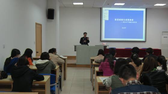 另外为了响应党的十八大号召,段教授将中国梦与科学建设和学术研究相结合,就城镇化问题与同学们进行了探讨。中国在改革开放30年时间当中,城市空间扩大了二三倍,城镇化率也达到了52.6%。但是,空间城市化并没有相应产生人口城市化。中国有2.6亿农民工,户籍问题把他们挡在了享受城市化成果之外,是否能真正实现城镇化成为一个现实并且亟待解决的问题。段老师向同学们介绍了新型城镇化的概念,结合丰富的图片、视频以及贴近生活的例子,分析了我国目前在城镇化方面存在的问题,并且提出了相应的解决对策和方案。