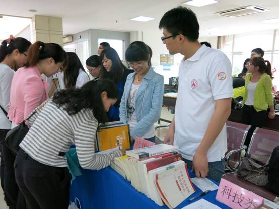 此次图书漂流节共征集到来自13个学院的近百本图书,包括财经、科技、法律、文学、经典五大类。活动开始后不久,展台前就吸引了大批同学驻足询问,现场人头攒动,一片热火朝天的景象。我院研究生会的工作人员为前来咨询的同学们耐心讲解了活动细则,介绍相关图书的内容,通过相互交谈,热心地向同学们推荐其感兴趣的图书,并指导其办理借书手续。在工作人员的通力配合和有序引导下,活动顺利开展着。